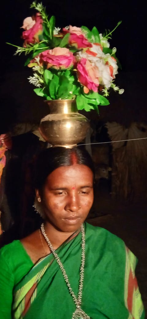Mugli Hembram a resident of Telipara-Kathaldanga village of Kaksha block, Paschim Bardhaman. She has been practicing the art for over 10 years. Mugli has learnt the artform from Gopinath Murmu. She is the team leader of Lang Tithi Nittya Gosthi. She has performed in Hyderabad, Balurghat, Bankura, Murshidabad and Durgapur with her team.