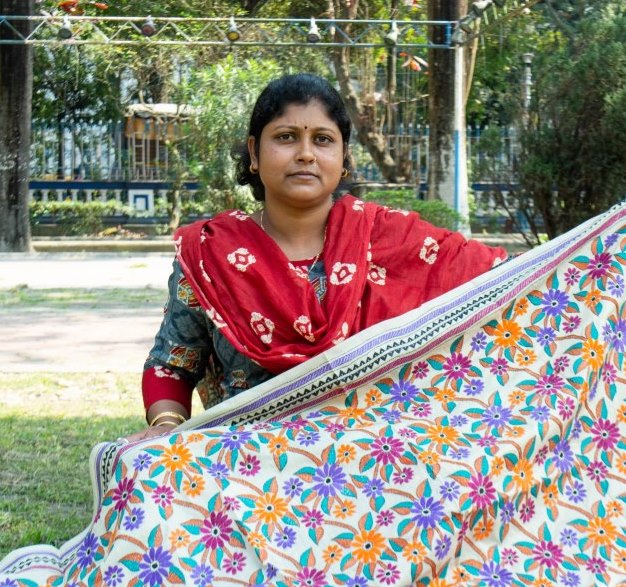 Ohida Khatun is one of the young leading Kantha Stitch artists of Ausgram in Purba Bardhaman. Ohida has learnt the Kantha Stitch work from her mother. She has been weaving Kantha for over 13 years. She has showcased her products at different fairs and festivals across West Bengal.